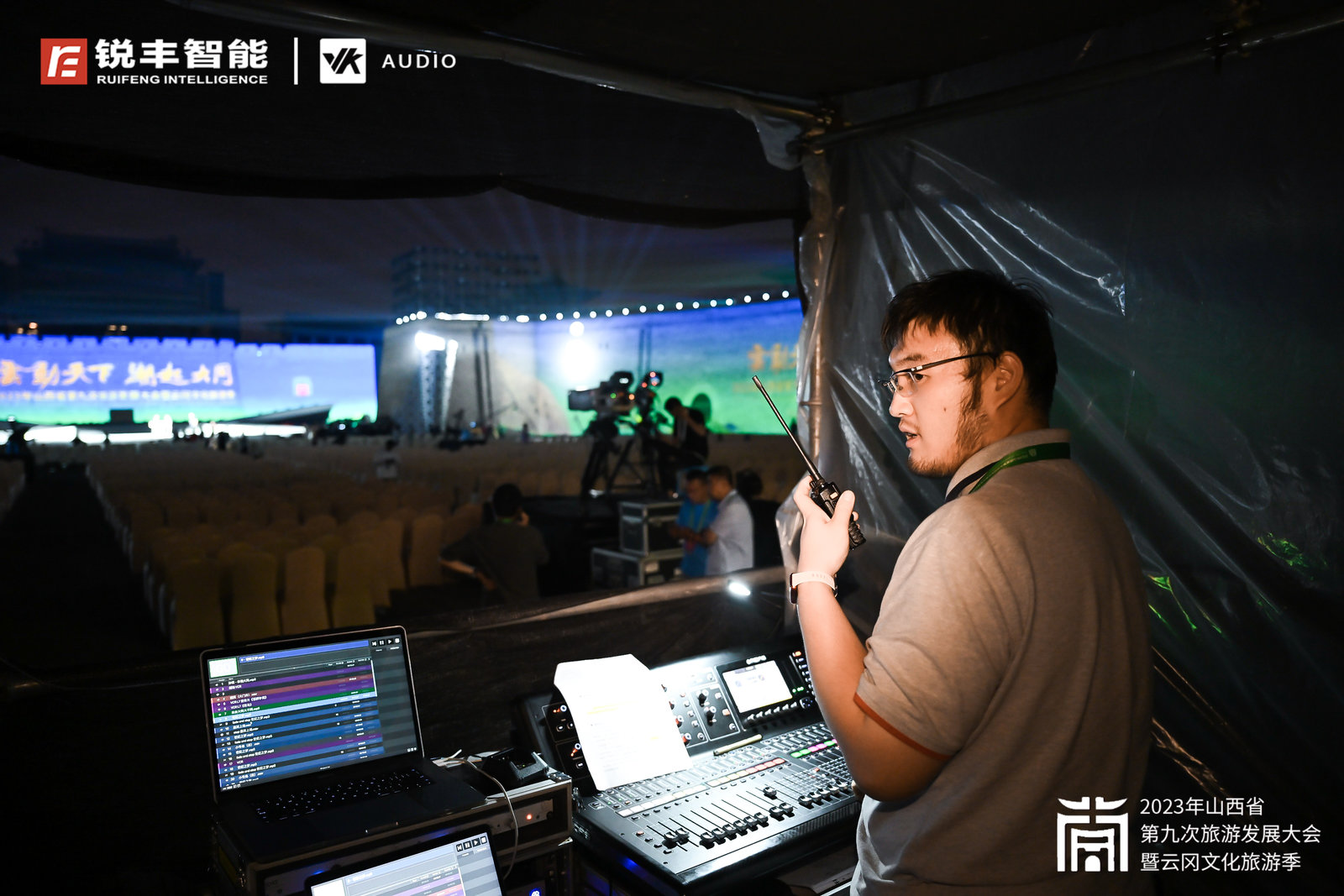 本次盛會的開幕式由著名音響設(shè)計師——宋多多老師擔(dān)任音響總設(shè)計,音響總監(jiān)為宋仁一老師。銳豐智能技術(shù)團(tuán)隊負(fù)責(zé)系統(tǒng)搭建及保障工作,整個開幕式文藝演出的音響系統(tǒng)采用了銳豐智能RF以及VK品牌音箱及周邊設(shè)備,擴聲區(qū)域由觀眾區(qū)、舞臺區(qū)和迎賓區(qū)三部分組成。