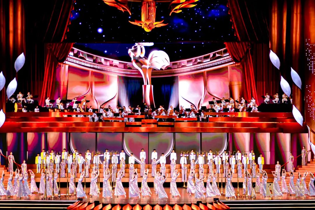 頒獎典禮主演出場地呈長方形,電影節(jié)現(xiàn)場觀眾席深約為100m,寬約70m,觀眾席后區(qū)有二層眺臺深約20m,地面到頂部裝飾面高約30m。舞臺口寬約50m,設(shè)計有一層舞臺演員表演區(qū)域和二層舞臺交響樂團演奏區(qū)域。演出活動中擴聲系統(tǒng)輸出的聲音還原度極高,語言清晰穩(wěn)定,均能滿足觀眾席的一層和二層體驗到震撼澎湃的擴聲效果和一致性的高質(zhì)量音效;同時,表演區(qū)演員也能夠沉浸在舞臺上的每一個精彩瞬間,盡情享受演出的魅力!