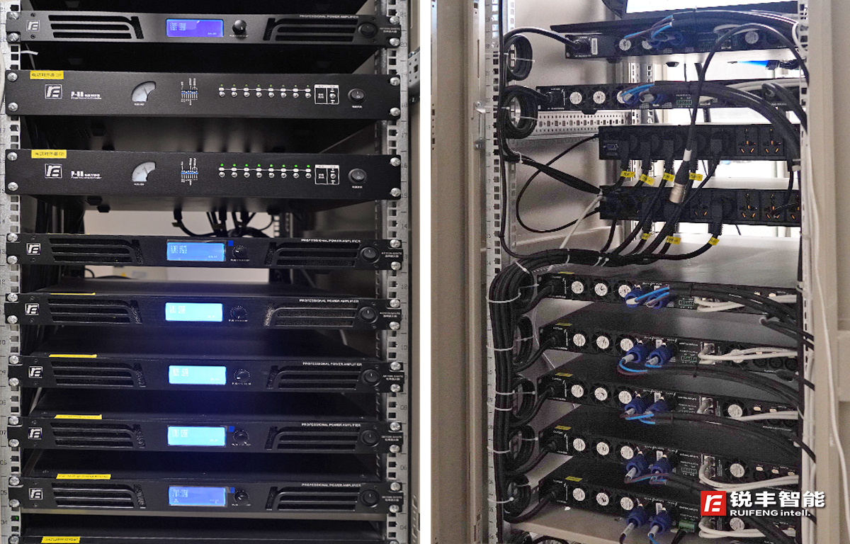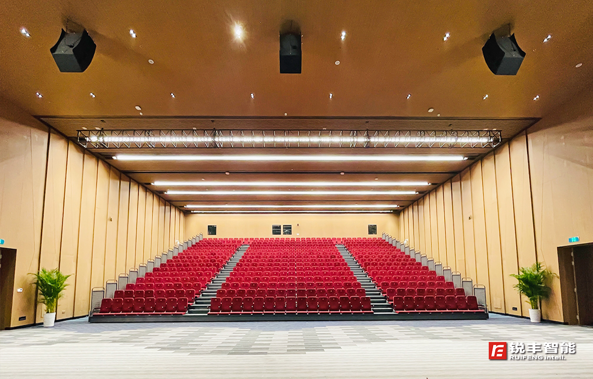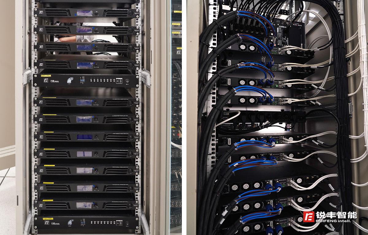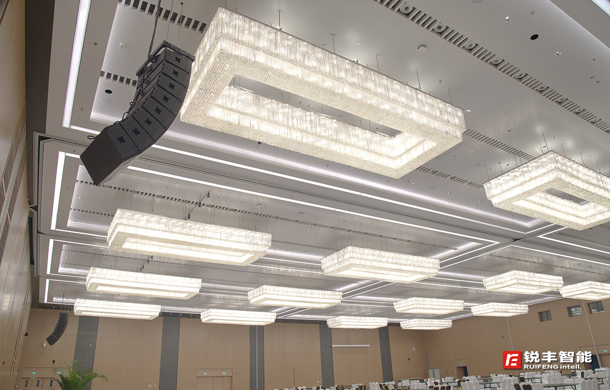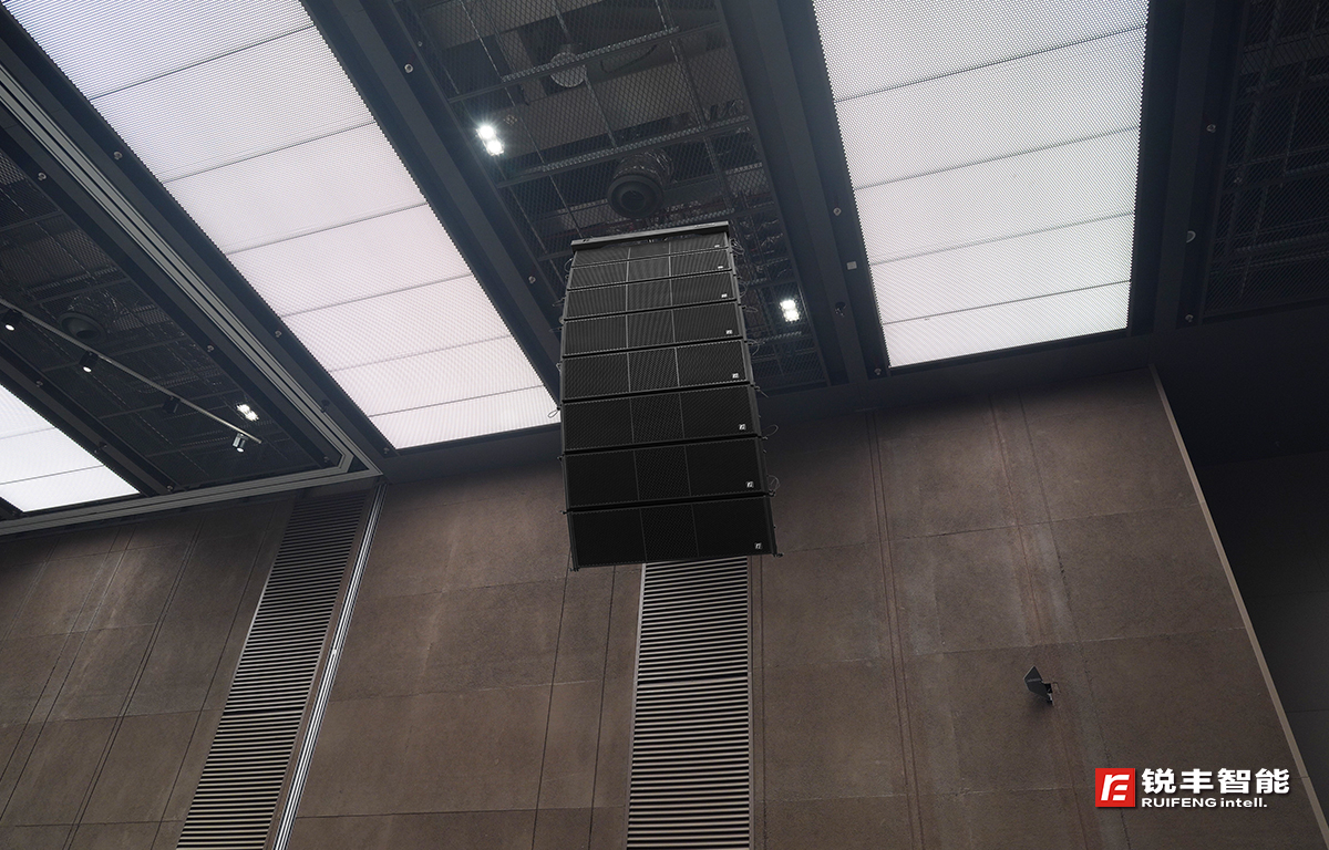 為了打造出適應(yīng)多模式多變化的新型數(shù)字化擴(kuò)聲系統(tǒng),銳豐智能的工程師在設(shè)計(jì)時(shí)充分考慮到:信號(hào)傳輸?shù)陌踩?、高效、兼容性等特點(diǎn),核心控制處理設(shè)備采用了集DSP數(shù)字信號(hào)處理、Dante數(shù)字信號(hào)(主備)+模擬信號(hào)自動(dòng)切換熱備份、網(wǎng)絡(luò)監(jiān)控等功能于一體的"RF"DA系列Dante數(shù)字功放;同時(shí),要求聲音具有良好的均勻覆蓋和整個(gè)頻寬范圍內(nèi)一致性非常好的清晰度及良好的聲像定位,擴(kuò)聲音箱采用了"RF"GTS系列線陣列音箱和MQ系列天花喇叭。
