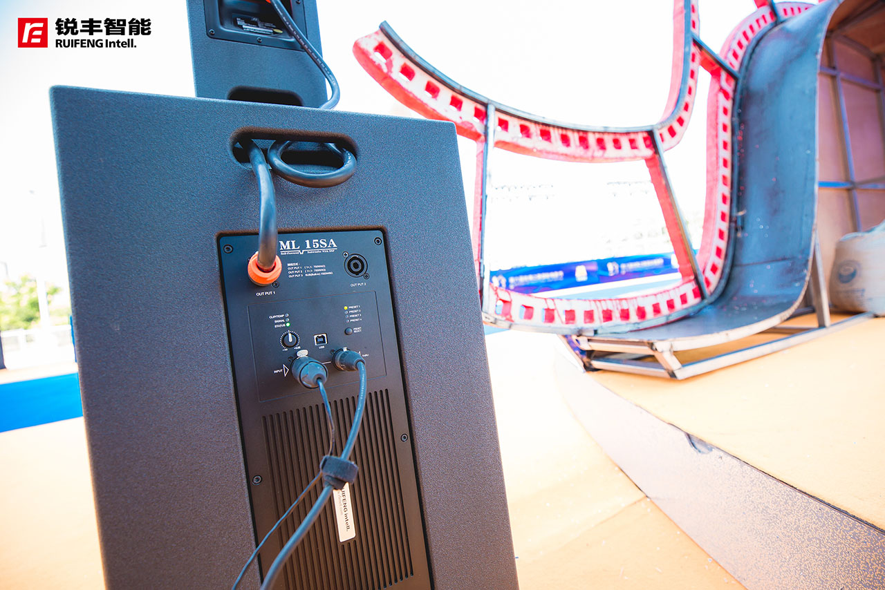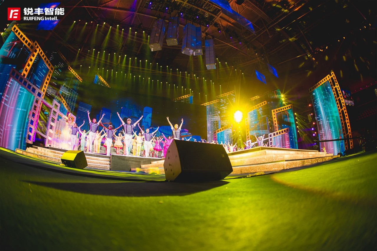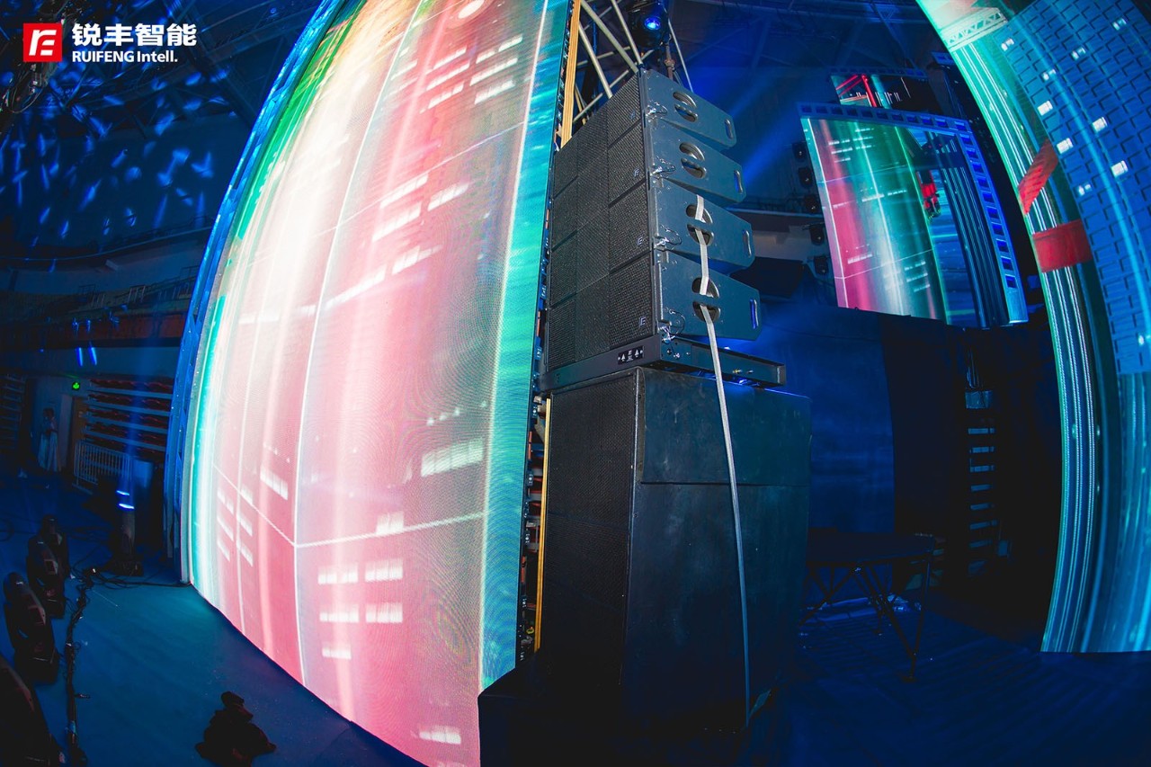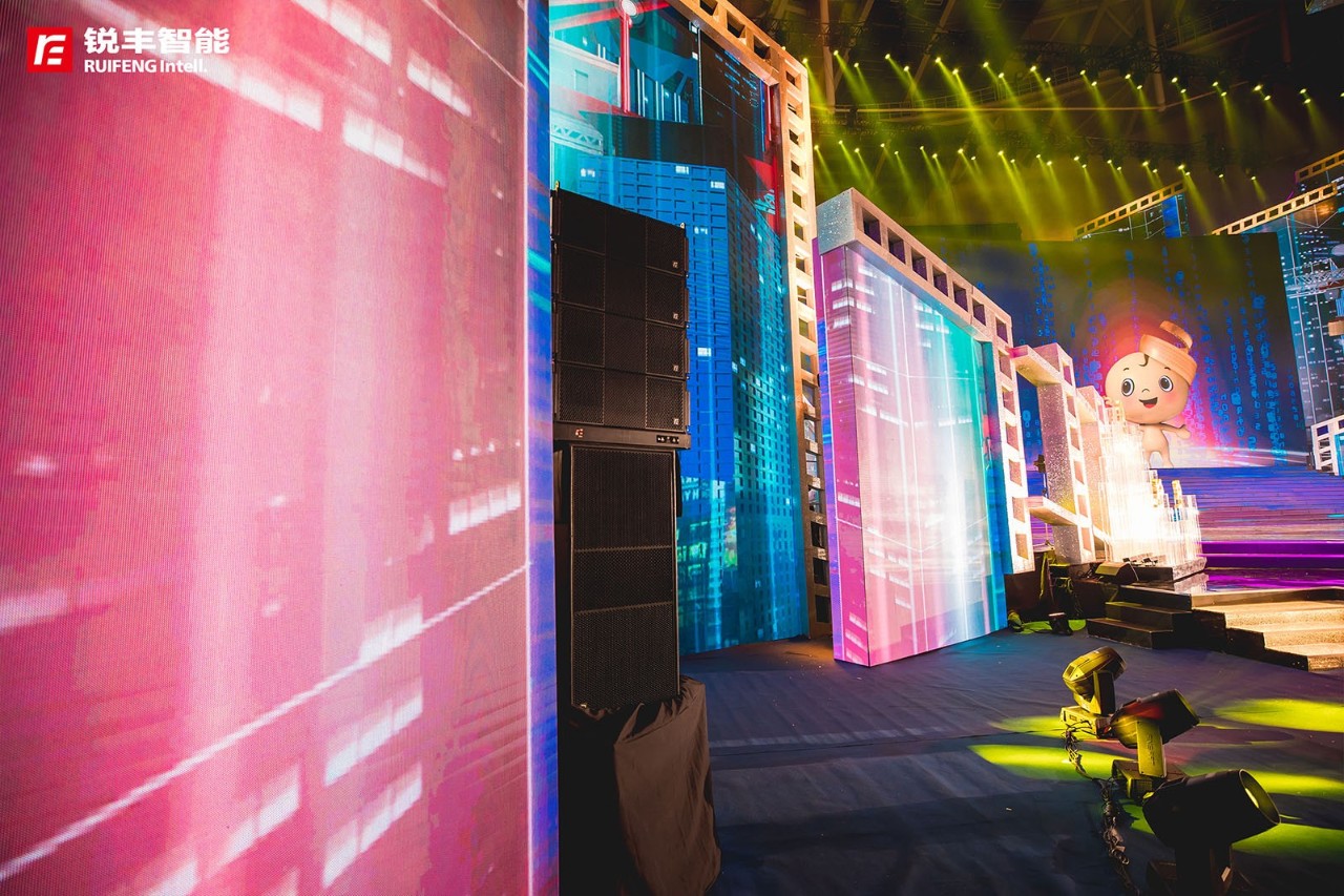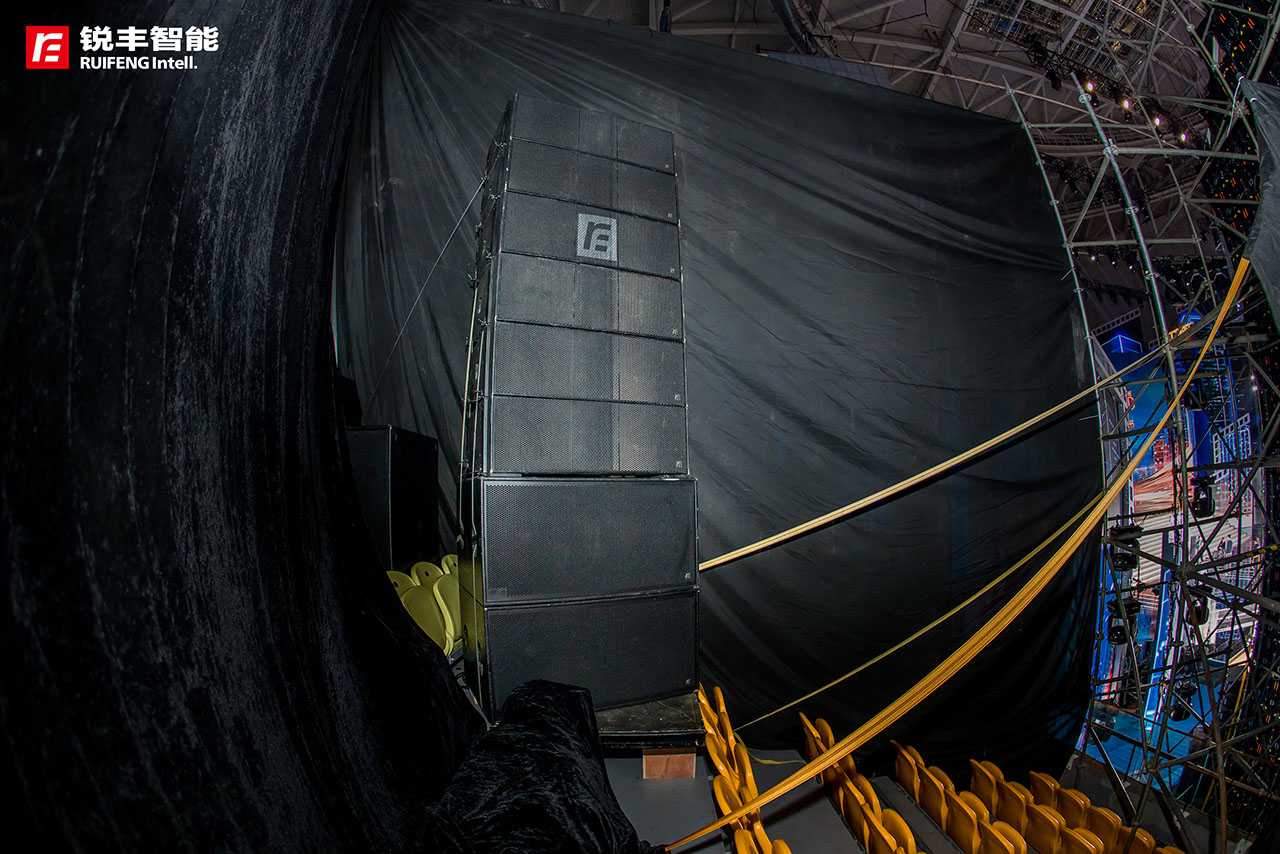 本次閉幕式主擴(kuò)聲系統(tǒng)采用了銳豐智能“RF”GTS系列線陣列音箱。一層觀眾席區(qū)的主擴(kuò)聲系統(tǒng),為配合舞臺(tái)兩側(cè)密集分布的顯示屏,在設(shè)計(jì)上選用了小體積,并具有強(qiáng)指向性、大聲壓級(jí)、大動(dòng)態(tài)特點(diǎn)的音箱,采用了8只GTS28二分頻線陣列音箱、2只WA218超低頻音箱組合擴(kuò)聲。