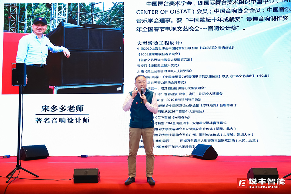 本次交流會(huì)邀請了著名音響設(shè)計(jì)師——宋多多老師為主講嘉賓,宋老師結(jié)合"RF"音響系統(tǒng),為嘉賓分享了不同揚(yáng)聲器針對不同場合的應(yīng)用方式,結(jié)合交流會(huì)現(xiàn)場的聲學(xué)環(huán)境,分享了提高語言清晰度的方法。并且講述了擴(kuò)聲系統(tǒng)在演藝擴(kuò)聲中的實(shí)用技巧。